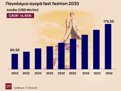 Όσον αφορά τα έσοδα, το μέγεθος της παγκόσμιας αγοράς γρήγορης μόδας αποτιμήθηκε σε περίπου 60,50 δισ. δολάρια το 2022 και αναμένεται να φτάσει τα 179,50 δισ. δολάρια ΗΠΑ, μέχρι το 2030.