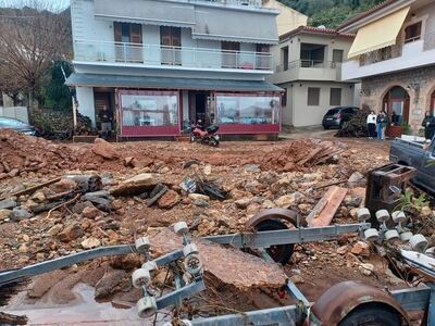 «Βομβαρδισμένο» τοπίο θυμίζει το χωριό Κιτριές στην Μεσσηνία, έπειτα από την έντονη βροχόπτωση που έπληξε την περιοχή το βράδυ της Κυριακής (12/01), με αποτέλεσμα να φουσκώσει το ρέμα και τα ορμητικά νερά να παρασύρουν έως και την κεντρική πλατεία, σχεδόν 300 τόνους φερτών υλικών, βάρκες, αυτοκίνητα και… τρέιλερ.