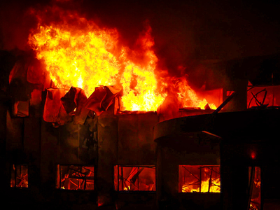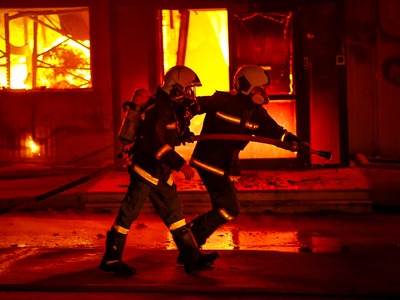 Η πυρκαγιά έχει επεκταθεί σε όλο τον ημιώροφο και το στοίχημα είναι να μην περάσει σε διπλανές επιχειρήσεις.