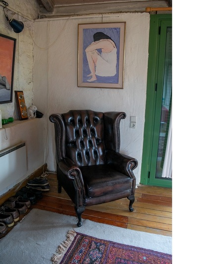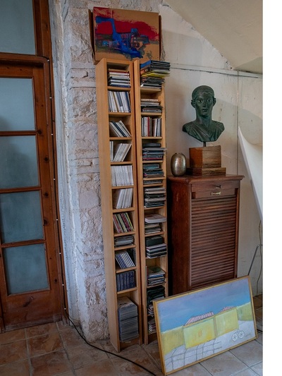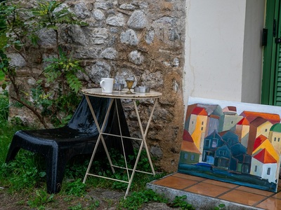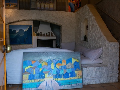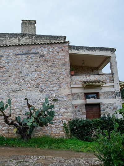Το σπίτι που παλιότερα στέγαζε και στάβλο- όπως πολλά στην περιοχή της Εγλυκάδας- έχει εκσυγχρονιστεί και επεκταθεί σε λιτές γραμμές δίχως να αποκηρύττει το παραδοσιακό του υπόβαθρο. Μέσα ανακαλύπτεις πληθώρα έργων ζωγραφικής σε δημοιουργική αναρχία, τα οποία ξεπρόβαλαν ανατρεπτικά και στους εξωτερικούς χώρους λόγω της επίσκεψης του thebest.gr.