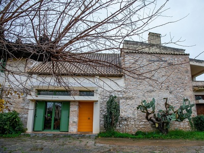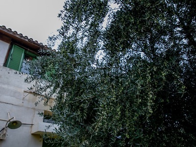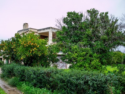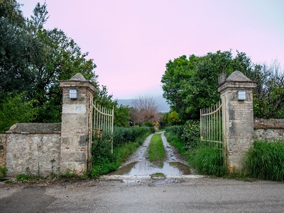 Πορτοκαλιές, ελιές και κάθε λογής πρασινάδες πίσω από την πέτρινη μάντρα και το νοσταλγικό πορτόνι.