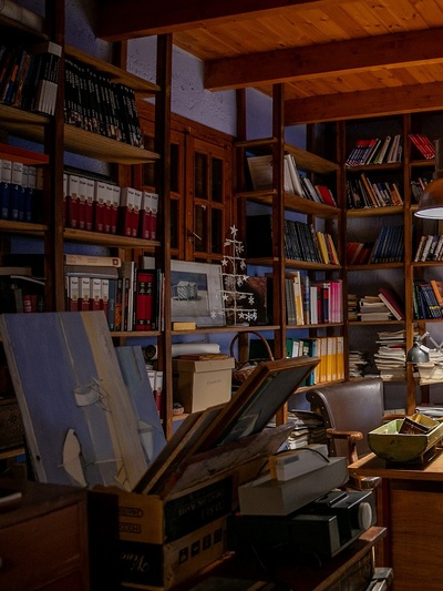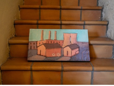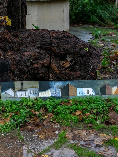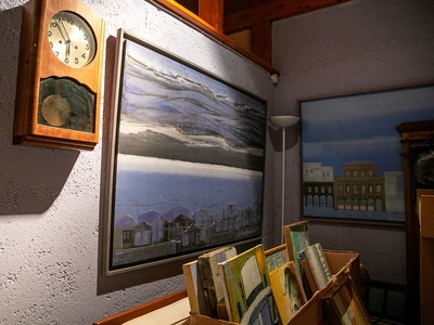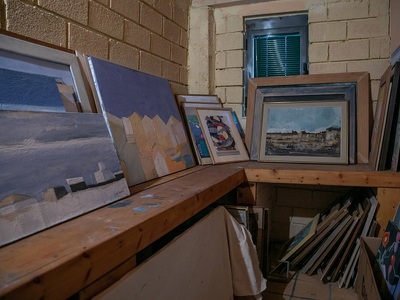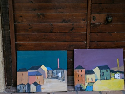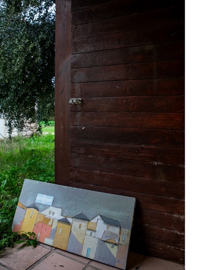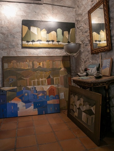 Εδώ ο Δημήτρης Σκληβανιώτης δημιούργησε το προσωπικό του ησυχαστήριο με ξεχωριστό κτίριο για το ατελιέ του. Οι πίνακές του εστιάζουν πρωτίστως σε τοπιογραφίες με δομημένη παράταξη κτιρίων χάρη στην εύγλωττη αρχιτεκτονική του ματιά, ενώ η παλέτα των χρωμάτων έχει μια δική της χάρη και αρμονία στους συνδυασμούς τους. Τα μέρη όπου μας ταξιδεύει ο καλλιτέχνης περισσότερο υπαινίσσονται την ταυτότητά τους, αφού προφανώς δεν αναπαρίστανται πιστά. Οι όγκοι των κτισμάτων αναπτύσσονται σε μια υπερβατική διάταξη ώστε οι όποιες φιγούρες να περιορίζονται σε δευτερεύοντα ρόλο.