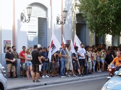 Αυτή την ώρα οι διαδηλωτές βρίσκονται έξω από το δημαρχείο της Πάτρας στην οδό Μαιζώνος, και έχουν προχωρήσει σε κατάληψη του κτιρίου, φωνάζοντας συνθήματα κατά της κυβερνητικής πολιτικής.