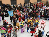 Αμέσως πήραν τη δράση οι μεταμφιεσμένες ομάδες των σχολείων των μικρών που με τον κεφάτο συντονισμό της προέδρου του ΣΙΚΕΠΑ Κατερίνας Γεώρμα και με τυμπανιστές του Μουσικού Σχολείου να δίνουν τον τόνο και υπό τους ήχους καρναβαλικής μουσικής, χόρεψαν με την ψυχή τους σχηματίζοντας «φιδάκια» και «ανοίγοντας» τα τρία χρώματα του Πατρινού Καρναβαλιού σηκώνοντας υφάσματα. Οι παιδικές φωνές έδωσαν με τον πιο γλυκό τρόπο το μήνυμα της έναρξης: «Ζήτω! Το Καρναβάλι αρχίζει!».