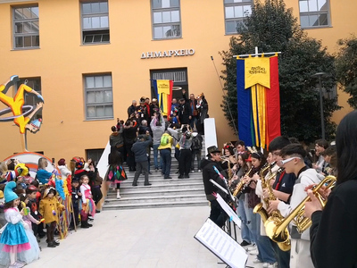 Το Μουσικό Σχολείο Πατρών υποδέχτηκε με τη Φιλαρμονική του το λάβαρο του Καρναβαλιού στο Δημαρχείο Πατρών, το πρωί της Παρασκευής 17 Ιανουαρίου 2025 στις 10:30.