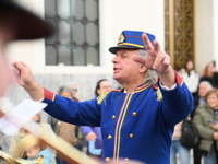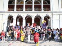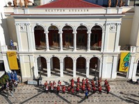 Φτάνοντας στην Πλατεία Γεωργίου Α΄ μπροστά από το Δημοτικό Θέατρο «Απόλλων» μουσικά προγράμματα ξετύλιξαν ξεσηκώνοντας το πολυπληθές κοινό η Δημοτική Μουσική, η Φιλαρμονική Ορχήστρα της Πολυφωνικής με χαρμόσυνους αποκριάτικους ρυθμούς και καρναβαλικούς παιάνες και η Ελεύθερη Ορχήστρα που ως ελεύθερη, αυθόρμητη και πολυμελής έδωσε τον καλύτερο εαυτό της με το κεφάτο ελεύθερο ρεπερτόριό της. Όλοι οι συντελεστές της πομπής με φόντο το αριστοτεχνικό κομψοτέχνημα του Τσίλερ φωτογραφήθηκαν μαζί αποτυπώνοντας τον «Ντόρο» και με εικόνα.