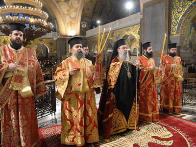 •Ἀνήμερα, Κυριακή 19 Ἰανουαρίου ἐ.ἒ., ὁ Σεβασμιώτατος ἐχοροστάτησε στόν Ὂρθρο καί προέστη τῆς Θείας Λειτουργίας εἰς τόν Νέον Ἱερό Ναό τοῦ Ἀποστόλου Ἀνδρέου, ὁ ὁποῖος εἶχε κατακλυσθεῖ ὑπό πλήθους εὐσεβῶν Χριστιανῶν καί ἐκήρυξε τόν θεῖο λόγο, ἀναφερθείς στό ἱστορικό τοῦ Σταυροῦ τοῦ Ἀποστόλου Ἀνδρέου, στήν περιπέτεια του νά μεταφερθῇ στή Δύση, νά εὑρεθῇ μετά ἀπό πολλούς αἰῶνες καί νά ἐπανακομισθῇ στήν πόλη τοῦ Μαρτυρίου του, στήν περιάκουστον πόλη τῶν Πατρῶν.