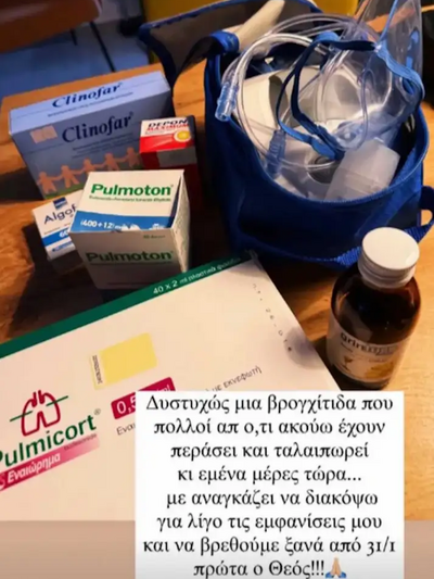 Συγκεκριμένα, στην ανάρτησή του αναφέρει: «Δυστυχώς μία βρογχίτιδα, που πολλοί από ότι ακούω έχουν περάσει και τους ταλαιπωρεί όπως κι εμένα μέρες τώρα, με αναγκάζει να διακόψω για λίγο τις εμφανίσεις μου και να βρεθούμε ξανά από 31/1 πρώτα ο Θεός. Σας ευχαριστώ για την αγάπη σας και τη στήριξή σας και υπόσχομαι να επανέλθω δριμύτερος».