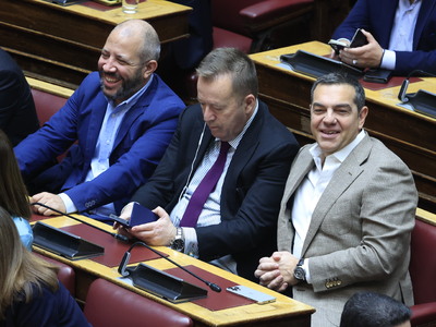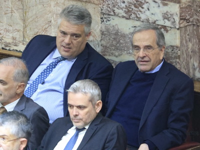- Τα πίσω έδρανα επέλεξαν επίσης ο πρώην πρωθυπουργός, Αντώνης Σαμαράς, έχοντας δίπλα του τον βουλευτή της ΝΔ, Μίλτο Χρυσομάλλη, οι ανεξάρτητοι βουλευτές, Αθηνά Λινού, Γιάννης Σαρακιώτης, Πέτρος Παππάς και ο βουλευτής του ΠΑΣΟΚ-ΚΙΝΑΛ, Οδυσσέας Κωνσταντινόπουλος.