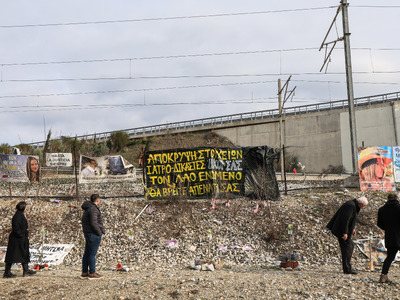 Στο σημείο της τραγωδίας στα Τέμπη βρέθηκαν την Κυριακή συγγενείς των θυμάτων για να αφήσουν λουλούδια στη μνήμη τους.