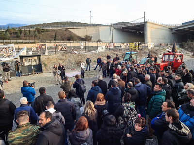 Στο σημείο έφτασαν και αγρότες από το μπλόκο της Γυρτώνης