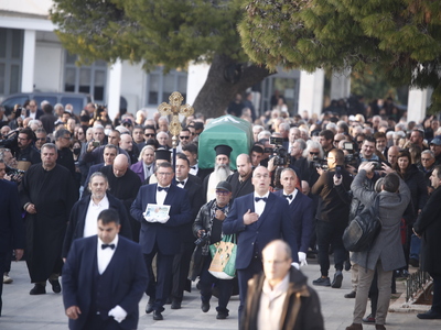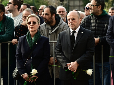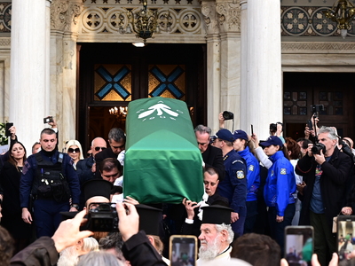Συγγενείς, φίλοι και πλήθος κόσμου βρίσκονταν εκεί για να αποχαιρετίσουν τον άνθρωπο που χάραξε το ελληνικό ποδόσφαιρο.