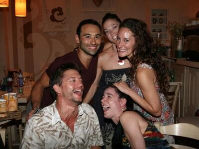 Σε μεγάλα κέφια οι MOMIX μετά την εμφάνισή τους στο Αρχαίο Ωδείο, όπου εντυπωσίασαν με το σόου τους, συνέχισαν το βράδυ τους.. «απέναντι από το Ωδείο». Ευδιάθετοι, χαμογελαστοί και πολύ ευγενικοί φωτογραφήθηκαν α μεταξύ τους, αλλά και με θαμώνες του μαγαζιού.