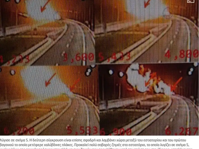 Η ανάλυση του οπτικού υλικού τη στιγμή της σύγκρουσης καταδεικνύει και την ακολουθία τριών διαδοχικών αλλά διακριτών φάσεων (πρώτη σύγκρουση, δεύτερη σύγκρουση, επιβράδυνση) από τη στιγμή της πρώτης μετωπικής σύγκρουσης έως τη στιγμή που κάθε όχημα ακινητοποιείται στην τελική του θέση.
