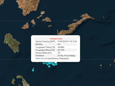 Το μέγεθος του σεισμού ήταν στα 4,8 Ρίχτερ, ενώ το εστιακό του βάθος σύμφωνα με τα πρώτα στοιχεία δείχνει στα 5 χλμ.