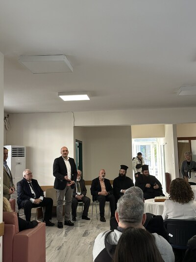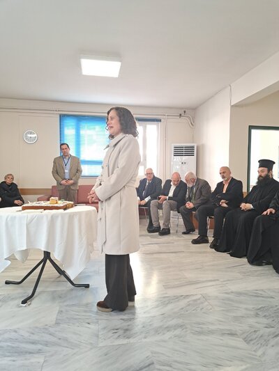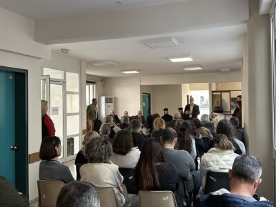 Τους καλεσμένους υποδέχτηκαν ο Διευθυντής του Κέντρου κ. Ρήγας Γεώργιος, Ψυχίατρος και η κ. Καραμπέρη Νικολίτσα, Προϊσταμένη του Νοσοκομείου Ημέρας