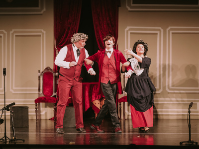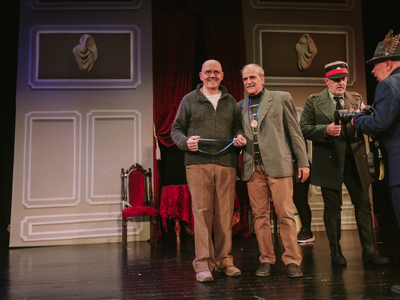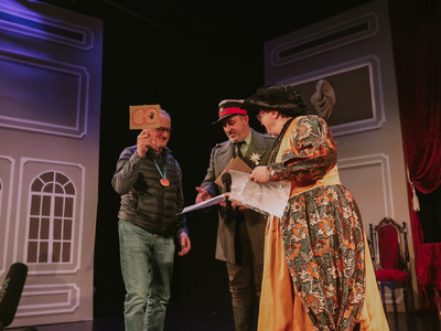 -Στον Πάρη Κιμιωνή (Ντε Ριλέτ) από την ομάδα «ΘεατρΊλιον» στο δρώμενο «Μια υπέροχη βραδιά» του Georges Courteline