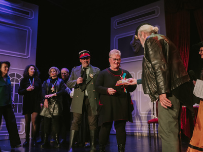 Η απονομή μετά τη σπονδυλωτή παράσταση των δρώμενων των 10 ερασιτεχνικών θιάσων από την Ελλάδα και τις Βρυξέλλες