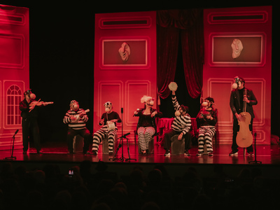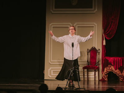 -Στην Γεωργία Κοσκινά του Νικολάου (Λισσάβε) από την Ιόνια Σκηνή (2023) για το δρώμενο «Το ίντερνετ» του Νίκου Παγκράτη.