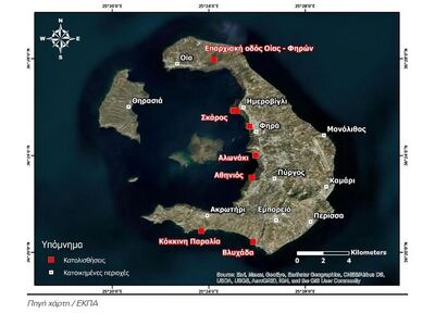 Οι θέσεις αυτές θα πρέπει με προτεραιότητα να ερευνηθούν περαιτέρω, μετά την ολοκλήρωση της σεισμικής ακολουθίας, και να υποδεχτούν αποτελεσματικά δομικά μέτρα, κατάλληλα προσαρμοσμένα στο ηφαιστειακό τοπίο και στο απαράμιλλο φυσικό κάλλος του νησιού» αναφέρει το ΕΚΠΑ.
