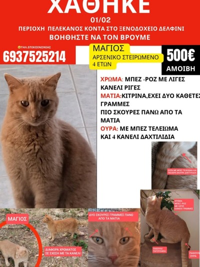 Χάθηκε ο γατούλης Μάγιος από την περιοχή της Έξω Αγυιάς, κοντά στο ξενοδοχείο «Δελφίνι».