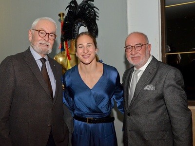 Τιμήθηκαν ο πρύτανης Χρήστος Μπούρας και η πρωταθλήτρια Νόρα Δράκου, παρούσα η πρόεδρος του σωματείου Καλλιπάτειρα, Κατερίνα Παναγοπούλου