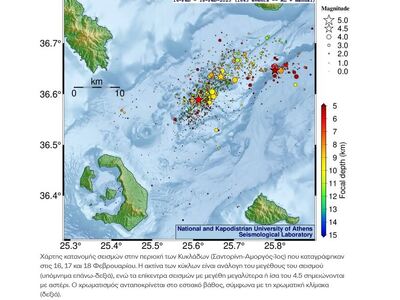 Όπως αναφέρεται στην ανακοίνωσή του ΕΚΠΑ για τους σεισμούς που ταρακουνούν την Σαντορίνη και τα γύρω νησιά των Κυκλάδων από τα τέλη του προηγούμενου μήνα, την Τρίτη, η σεισμική δραστηριότητα παρουσίασε «μετανάστευση» προς τα ανατολικά της Ανύδρου, όπου και εκεί εκδηλώθηκε ο σεισμός των 4,9 Ρίχτερ, στις 06:46 το πρωί.