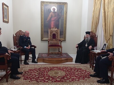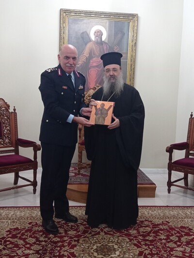 Αρχικά ο Γενικός Επιθεωρητής Αστυνομίας Νοτίου Ελλάδας επισκέφτηκε τον Σεβασμιώτατο Μητροπολίτη Πατρών κ.κ. Χρυσόστομο, συνοδευόμενος από τον Γενικό Περιφερειακό Αστυνομικό Διευθυντή Δυτικής Ελλάδας Υποστράτηγο Θεόδωρο ΤΣΑΤΣΑΡΗ και τον Διευθυντή της Διεύθυνσης Αστυνομίας Αχαΐας, Ταξίαρχο Ιωάννη ΜΠΟΥΜΗ, ενώ στη συνέχεια επισκέφθηκε τον Περιφερειάρχη Δυτικής Ελλάδας κ. Νεκτάριο ΦΑΡΜΑΚΗ και τον Δήμαρχο Πατρέων κ. Κωνσταντίνο ΠΕΛΕΤΙΔΗ.