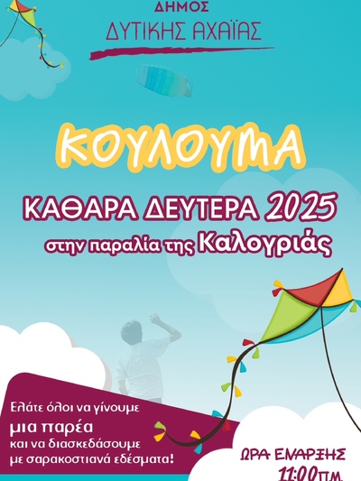 Στην παραλία της Καλογριάς θα γιορτάσει για πρώτη φορά φέτος τα «Κούλουμα» ο Δήμος Δυτικής Αχαΐας, προσκαλώντας μικρούς και μεγάλους σε μια γιορτή με σαρακοστιανά εδέσματα και πολλές εκπλήξεις.