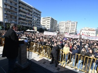 "Βρισκόμαστε σήμερα εδώ, σ’ αυτή τη μεγαλειώδη από κάθε άποψη, απεργιακή συγκέντρωση, γιατί είμαστε αποφασισμένοι να μην επιτρέψουμε να κρυφτούν οι πραγματικές αιτίες του εγκλήματος των Τεμπών", είπε στην αρχή της ομιλίας του