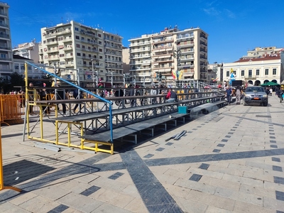 Στήθηκε ξανά όλος ο καρναβαλικός εξοπλισμός που είχε ξηλωθεί, για τις ανάγκες της χθεσινής συγκέντρωσης για τα Τέμπη