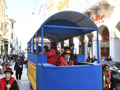 Τα οχήματα με τους σοκολατορίχτες με τη συνοδεία του μουσικού άρματος, παρέλασαν και σκόρπισαν χαρά στον κόσμο που βρισκόταν στα πεζοδρόμια των κεντρικών δρόμων και στην πλατεία Γεωργίου Α΄. Ο αναλλοίωτος και ανθεκτικός στο πέρασμα του χρόνου σοκολατοπόλεμος με τις γνωστές ρίψεις σοκολατών το καρναβαλικό χρώμα στο κέντρο της Πάτρας με τους σοκολατορίχτες να προγλυκαίνουν τον κόσμο ενόψει της ποδαράτης παρέλασης.