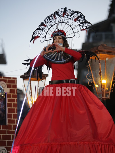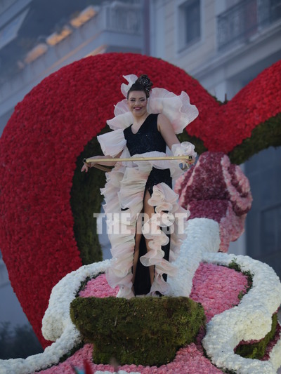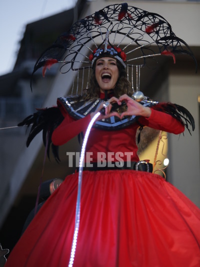 Η Βασίλισσα του Πατρινού Καρναβαλιού 2025 Ελένη Μπάδα ανέβηκε στο άνθινο άρμα της και έκανε την εμφάνισή της στη νυχτερινή ποδαράτη που είναι σε εξέλιξη