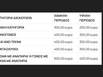Συγκεκριμένα τα ποσά ενίσχυσης για την Χαμηλή Περίοδο (από την ημερομηνία έκδοσης της κάρτας - 30.04.2025 & 01.10.2025 - 31.12.2025) και την Υψηλή Περίοδο (01.05.2025 - 30.09.2025) διαμορφώνονται ως εξής: