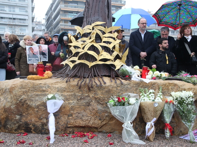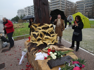 «Το δέντρο της μνήμης που ριζώνει από σήμερα στην καρδιά της Θεσσαλονίκης με τα πεσμένα από τα κλαδιά πουλιά, θα υπενθυμίζει στο διηνεκές το αναιτιολόγητο, εξοργιστικό χαμό των ανθρώπων αυτών αλλά και την αδήριτη ανάγκη να ληφθούν άμεσα όλα τα απαραίτητα μέτρα ώστε να προληφθούν στο μέλλον ανάλογες τραγωδίες», είπε ο δήμαρχος κ.Αγγελούδης, κατά την τελετή των αποκαλυπτηρίων.
