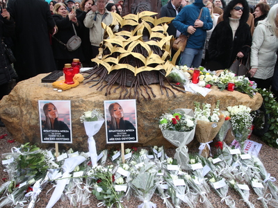 Σε κλίμα συγκίνησης πραγματοποιήθηκαν το μεσημέρι σε χώρο πρασίνου στη Νέα Παραλία της Θεσσαλονίκης τα αποκαλυπτήρια του γλυπτού με τίτλο «Το δέντρο της μνήμης», που είναι αφιερωμένο στα 57 θύματα των Τεμπών.
