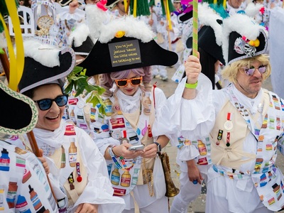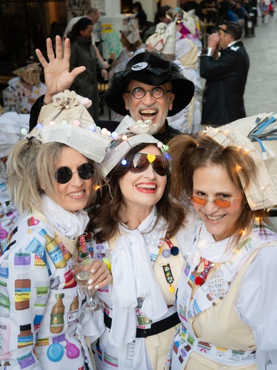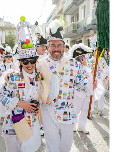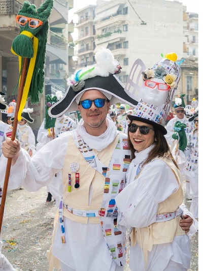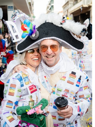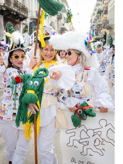 Το προσόν του είναι η παραδοσιακή, ομαδική χειροτεχνία. Εδώ η παρκετέζα γίνεται άλογο και τα εμπριμέ υφάσματα τυπώνονται custom made με φανταστικά φάρμακα κόντρα στον αποκριάτικο… παροξυσμό. Πολλοί από μας γινόμαστε κεντήστρες αλλά κυρίως γνωριζόμαστε χρόνια. Πολλά.
