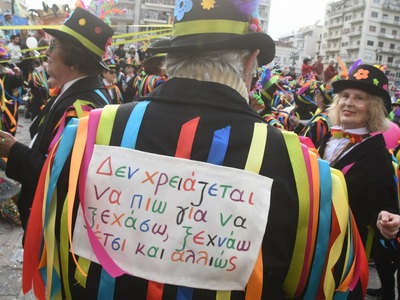 Μια πρωτόγνωρη εμπειρία είχαν 60 μέλη των τριών ΚΑΠΗ του Κοινωνικού Οργανισμού του Δήμου Πατρέων (ΚΟΔΗΠ) στο φετινό Καρναβάλι. Συμμετείχαν με εργαζόμενους του Τμήματος Τρίτης Ηλικίας, που τους συνόδευαν, στη μεγάλη κυριακάτικη καρναβαλική παρέλαση. Άτομα 65+ μέχρι κι ως 85! ετών, αποτέλεσαν το γκρουπ Νο 240 με τίτλο «65 αποχρώσεις της ζωής».