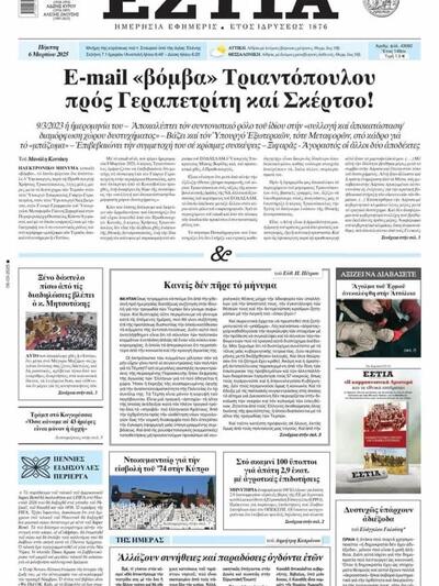 Τι αναφέρει σε δημοσίευμά της η εφημερίδα «Εστία»