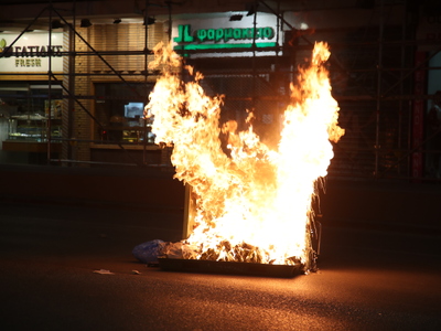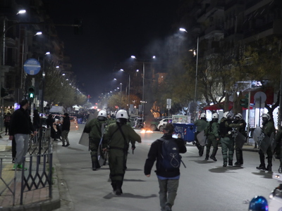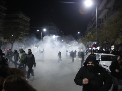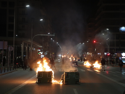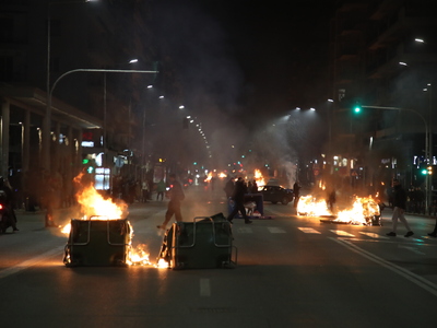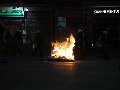 Στη συνέχεια τα επεισόδια γενικεύτηκαν και οι διαδηλωτές έβαλαν φωτιές σε κάδους στην Αγίου Δημητρίου από το ύψος της εκκλησίας μέχρι την Αγίας Σοφίας. Τελικά οι αστυνομικοί απώθησαν τους διαδηλωτές σε γύρω στενά.