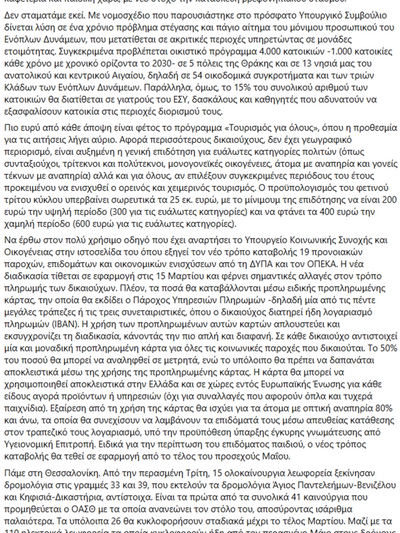 Να έρθω στον πολύ χρήσιμο οδηγό που έχει αναρτήσει το Υπουργείο Κοινωνικής Συνοχής και Οικογένειας στην ιστοσελίδα του όπου εξηγεί τον νέο τρόπο καταβολής 19 προνοιακών παροχών, επιδομάτων και οικονομικών ενισχύσεων από τη ΔΥΠΑ και τον ΟΠΕΚΑ. Η νέα διαδικασία τίθεται σε εφαρμογή στις 15 Μαρτίου και φέρνει σημαντικές αλλαγές στον τρόπο πληρωμής των δικαιούχων. Πλέον, τα ποσά θα καταβάλλονται μέσω ειδικής προπληρωμένης κάρτας, την οποία θα εκδίδει ο Πάροχος Υπηρεσιών Πληρωμών -δηλαδή μία από τις πέντε μεγάλες τράπεζες ή τις τρεις συνεταιριστικές, όπου ο δικαιούχος διατηρεί ήδη λογαριασμό πληρωμών (ΙΒΑΝ). Η χρήση των προπληρωμένων αυτών καρτών απλουστεύει και εκσυγχρονίζει τη διαδικασία, κάνοντάς την πιο απλή και διαφανή. Σε κάθε δικαιούχο αντιστοιχεί μία και μοναδική προπληρωμένη κάρτα για όλες τις κοινωνικές παροχές που δικαιούται. Το 50% του ποσού θα μπορεί να αναληφθεί σε μετρητά, ενώ το υπόλοιπο θα πρέπει να δαπανάται αποκλειστικά μέσω της χρήσης της προπληρωμένης κάρτας. Η κάρτα θα μπορεί να χρησιμοποιηθεί αποκλειστικά στην Ελλάδα και σε χώρες εντός Ευρωπαϊκής Ένωσης για κάθε είδους αγορά προϊόντων ή υπηρεσιών (όχι για συναλλαγές που αφορούν όπλα και τυχερά παιχνίδια). Εξαίρεση από τη χρήση της κάρτας θα ισχύει για τα άτομα με οπτική αναπηρία 80% και άνω, τα οποία θα συνεχίσουν να λαμβάνουν τα επιδόματά τους μέσω απευθείας κατάθεσης στον τραπεζικό τους λογαριασμό, υπό την προϋπόθεση ύπαρξης έγκυρης γνωμάτευσης από Υγειονομική Επιτροπή. Ειδικά για την περίπτωση του επιδόματος παιδιού, ο νέος τρόπος καταβολής θα τεθεί σε εφαρμογή από το τέλος του προσεχούς Μαΐου.