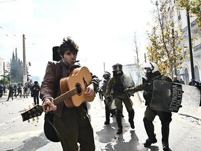 Σίγουρα, όσοι βρεθήκαμε στη μεγαλειώδη συγκέντρωση της 28ης Φεβρουαρίου αλλά και όσοι μετά «σκρολάραμε» στα social media, είδαμε έναν τύπο με μια κιθάρα, ανάμεσα στο πλήθος ή μπροστά από ΜΑΤατζήδες με δακρυγόνα και κρότου λάμψης, απλά να γρατζουνάει τις χορδές, να σιγοτραγουδάει και να παίζει φυσαρμόνικα. Οι περισσότεροι, όπως φάνηκε πολύ γρήγορα στα μέσα κοινωνικής δικτύωσης, αρχίσαμε να αναρωτιόμαστε ποιος είναι και τι κάνει. Έχει σημασία; Όχι, λέει ο ίδιος.