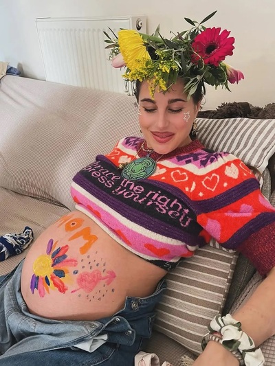 Οι στενοί φίλοι της τραγουδίστριας γέμισαν το σπίτι με άνθη και στεφάνια, ενώ ζωγράφισαν την φουσκωμένη της κοιλιά με πολύχρωμα λουλούδια.