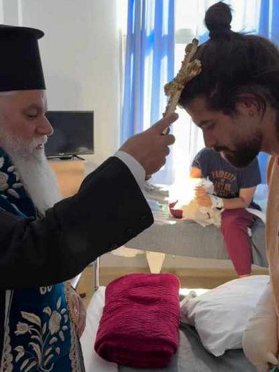 Στο ΚΑΤ όπου νοσηλεύεται ο γνωστός κλαρινίστας Άρης Μουγκοπέτρος μετά τον σοβαρό τραυματισμό του από κροτίδα που «έσκασε» στα χέρια του και οδήγησε στον ακρωτηριασμό των δακτύλων σε γλέντι τη Δευτέρα του Πάσχα, στα Τριπόταμα Αχαΐας, βρέθηκε ο Μητροπολίτης Καλαβρύτων και Αιγιαλείας Ιερώνυμος.