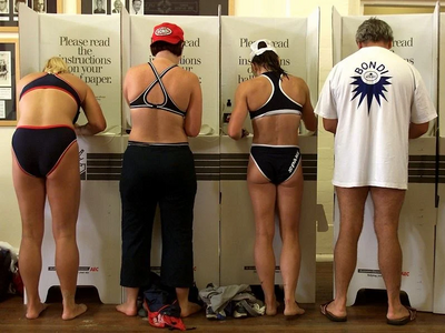 Τίποτα δεν είναι πιο στερεοτυπικά Αυστραλιανό από την παραλία Bondi και τα μπικίνι. Το 2001, στήθηκε για πρώτη φορά ένα εκλογικό τμήμα στο Bondi Beach Surf Lifesavers Club. Από τότε, οι ένθερμοι ψηφοφόροι πάνε απευθείας από την παραλία για να ψηφίσουν.