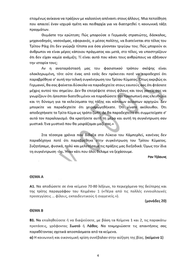 Δείτε τα προτεινόμενα θέματα για το μάθημα Νεοελληνική Γλώσσα και Λογοτεχνία Γενικής Παιδείας