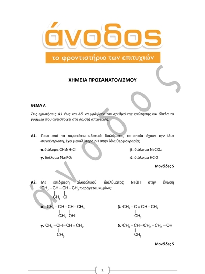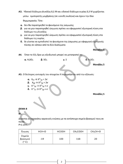 Δείτε τα προτεινόμενα θέματα για το μάθημα Χημεία Ο.Π. Θετικών Σπουδών και Ο.Π. Σπουδών Υγείας