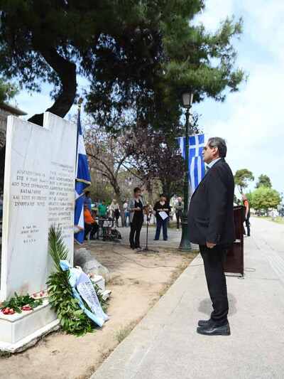 Τιμή και δόξα στους αγωνιστές της Εθνικής Αντίστασης, τιμή και δόξα σ’ αυτούς που τσάκισαν το φασισμό!»