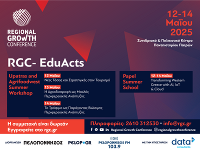 Το Regional Growth Conference 2025 (RGC 2025), πρόκειται να διεξαχθεί 12 – 14 Μαΐου 2025 στο Συνεδριακό και Πολιτιστικό Κέντρο του Πανεπιστημίου Πατρών, με συνδιοργανωτή το Πανεπιστήμιο Πατρών.