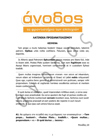 Δείτε τα προτεινόμενα θέματα για το μάθημα: Λατινικά Προσανατολισμού